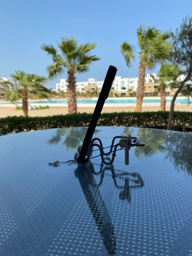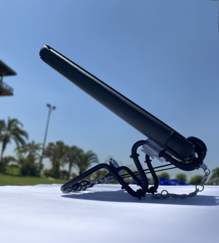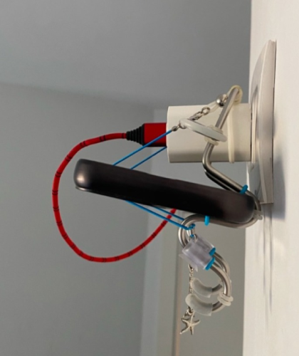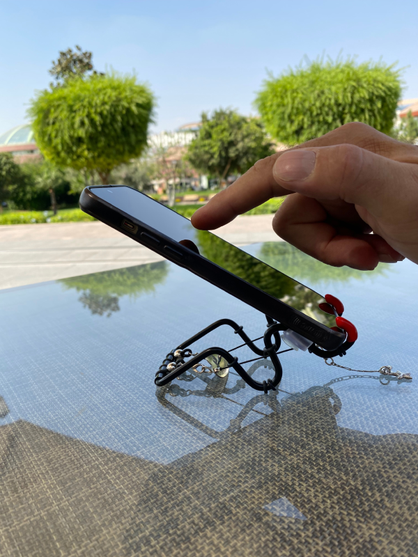 The holder is made of iron metal coated with an electrostatic coating that is scratch-resistant and electrical insulator. An additional electrical insulator has been added for double protection.